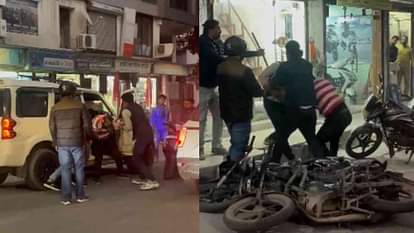 स्कार्पियों सवार को बीच सड़क पीटने लगे दो युवक, देर रात तक चलता रहा हंगामा, लोगों ने किया बीच-बचाव