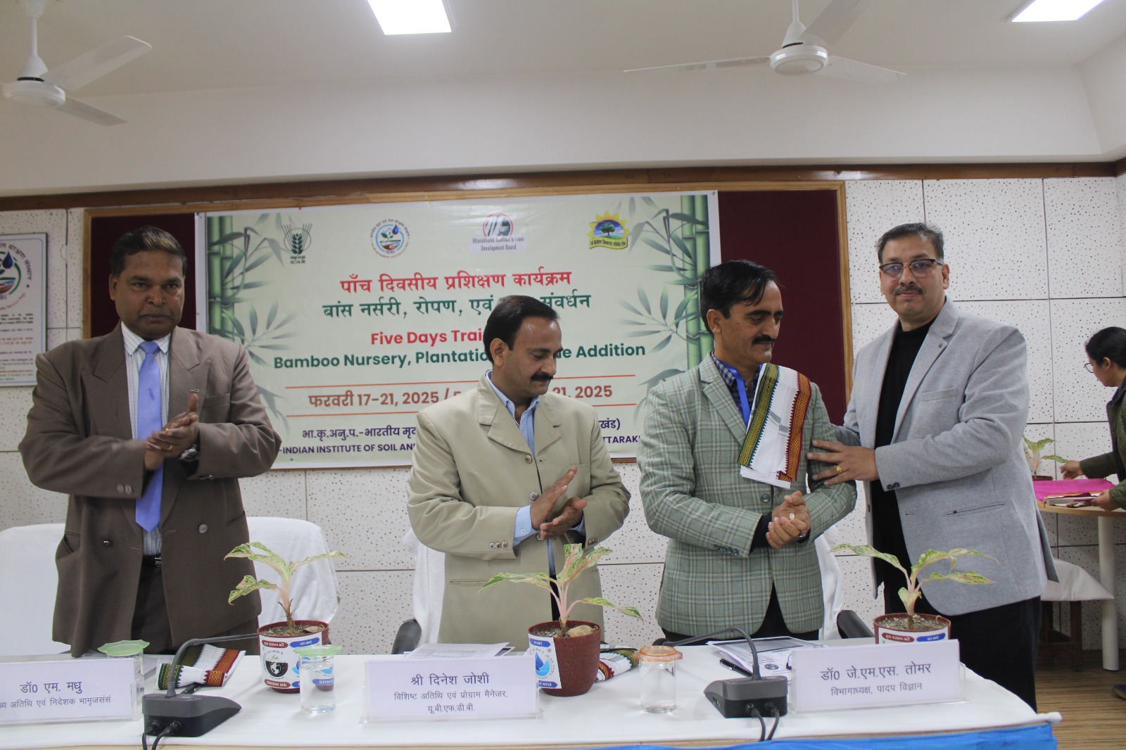 भारतीय मृदा और जल संरक्षण संस्थान उत्तराखण्ड बांस और फाइबर विकास बोर्ड एवं सर्व कल्याण विकास समिति के संयुक्त तत्वाधान में बांस नर्सरी, प्लांटेशन और मूल्यवर्धन विषय पर पांच दिवसीय प्रशिक्षण कार्यक्रम का आयोजन भारतीय कृषि अनुसंधान परिषद- भारतीय मृदा और जल संरक्षण संस्थान देहरादून में आरंभ हो गया है। प्रशिक्षण में पर्यावरण संरक्षण एवं रोजगार संवर्धन में बांस के बढ़ते उपयोग को व्यवसायिक रूप देने, बांस नर्सरी, प्लांटेशन और मूल्यवर्धन सहित कई महत्वपूर्ण विषयों पर प्रशिक्षण दिया जाएगा। प्रशिक्षण में देशभर के विभिन्न राज्यों से प्रशिक्षु एवं टेªनर हिस्सा ले रहे हैं।